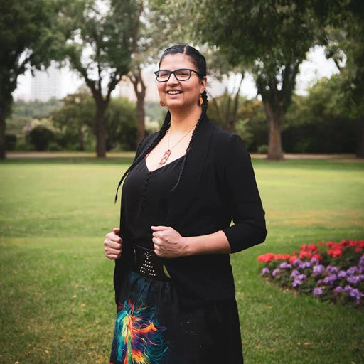So, why the floral scarf? On the prairies, there is a vast history of trade and commerce between Indigenous Nations. But what people may not recognize is the history of trade and cooperation between the original peoples and settlers. In fact, the Ukrainian and Cree communities often worked closely together during times of major hardship and famine. Cooperation like this, between Indigenous Nations and newcomers, is a story that is found over and over again across Turtle Island. It was because of this trade, commerce, and cooperation that floral scarves became a symbol of the strength and hard work of our matriarchs.